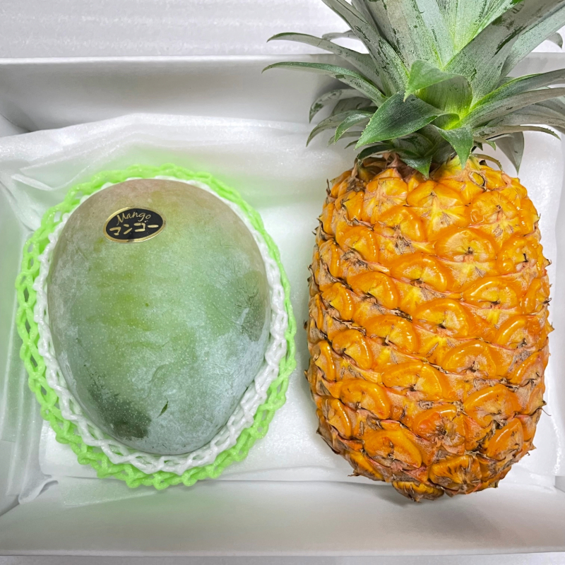 2種類の味わいを一度に楽しめる贅沢な詰め合わせ。 マンゴー好きから“幻のマンゴー”と呼ばれる【沖縄県産キーツマンゴー】。 一般的なアップルマンゴーに比べてサイズが大きく、果肉はとろけるように濃厚。 糖度が高く、クリーミーでコクのある甘さが口いっぱいに広がります。 芳醇な香りも魅力で、一度食べれば忘れられない極上の美味しさです。 爽やかでジューシーな甘みが人気の【沖縄県産パイナップル】をセットにしました。 果汁たっぷりで、南国らしい爽快な酸味と甘さのバランスは夏にぴったり。 冷やしてそのままはもちろん、カットしてヨーグルトやデザートに添えても美味しくいただけます。