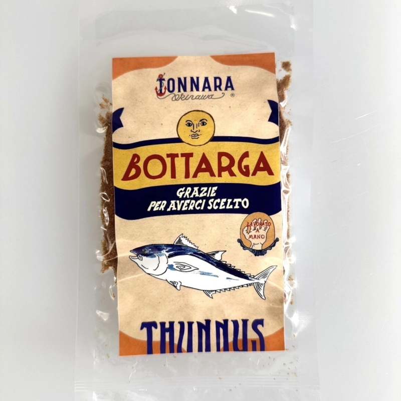 沖縄のマグロは漁場が陸に近いため鮮度が高く、希少な本マグロの漁獲量も全国トップクラスです。 そこに目をつけたのが、那覇の人気店〈BACAR(バカール)〉オーナー・仲村大輔さん。 BACARの元シェフの玉城(たまき)絵利子さんがシチリアから持ち帰ったアイデアをもとに、市場で行き場をなくしていたマグロの卵巣で沖縄産ボッタルガ(からすみ)を作りはじめたのが誕生のきっかけ。 沖縄の食材の豊かさや価値が詰まった「ボッタルガ」を、全国の食通のみなさんのお手元にお届けいたします。