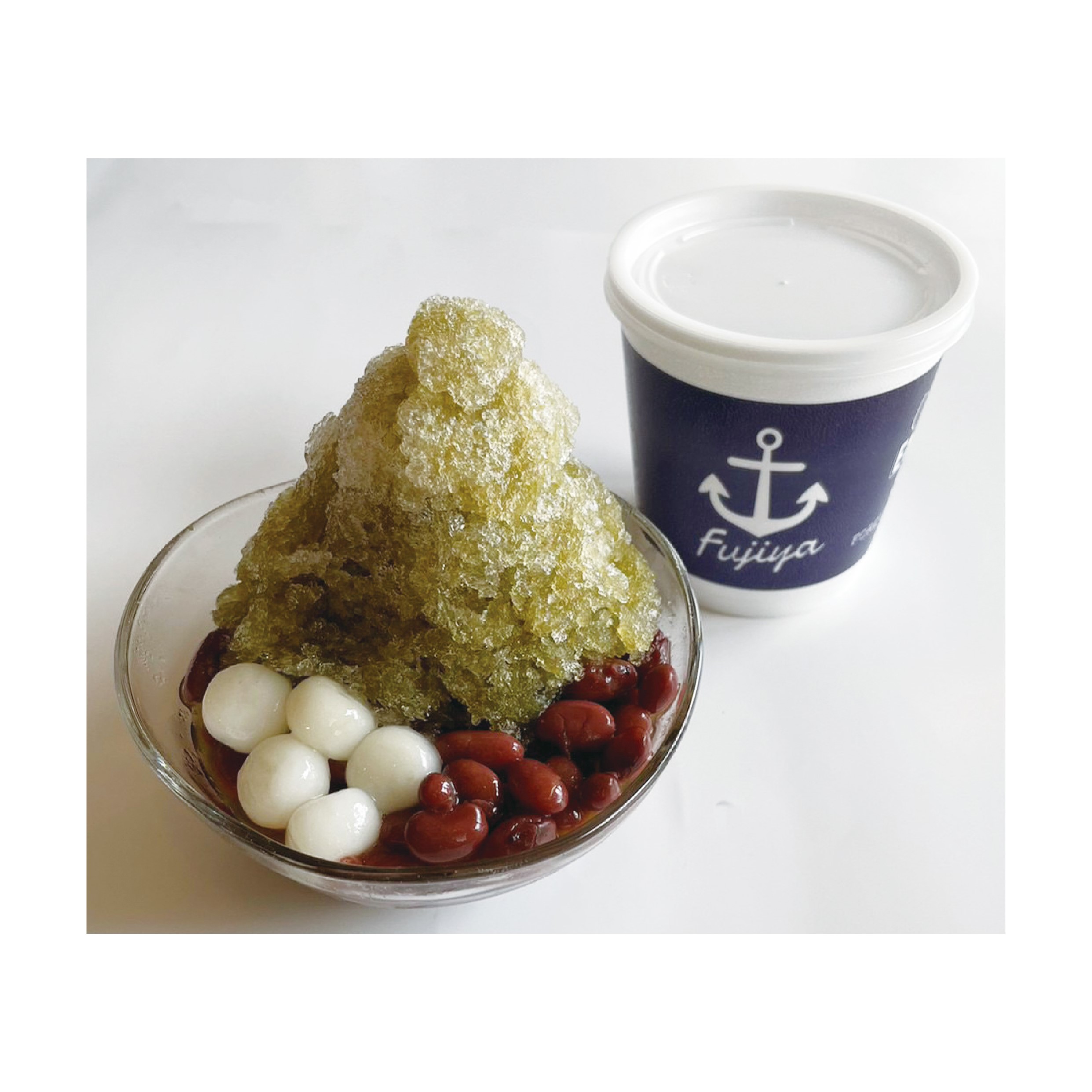 いつもの富士家ぜんざいに加え、小浜島産の希少な黒糖を使用したコク深い甘みの氷ぜんざいと、厳選された国産抹茶の香りとほのかな苦みが広がる風味豊かな氷ぜんざいのセット。 シャリシャリとした食感に、ふっくら炊き上げた金時豆ともっちりとした白玉を合わせ、やさしい甘さと食感のアクセントを最後までお楽しみいただけます。