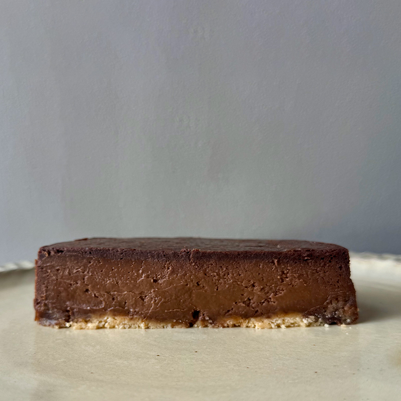 お湯をはり低温でじっくりゆっくりと、丁寧に長時間焼き上げる事で、ラム酒の豊かな香りを残しながら生チョコのような食感に。
