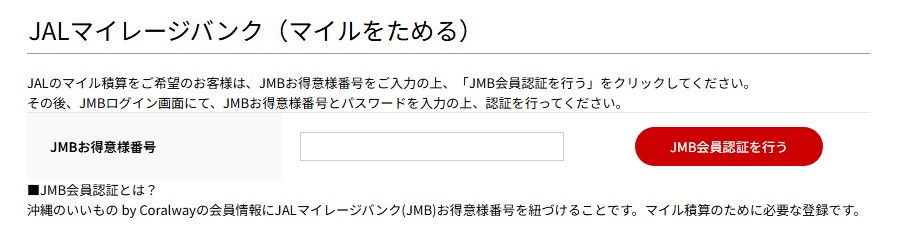 ②マイページまたは会員登録時にJMB会員番号を認証、登録せずに当サイトにて商品をご購入された場合