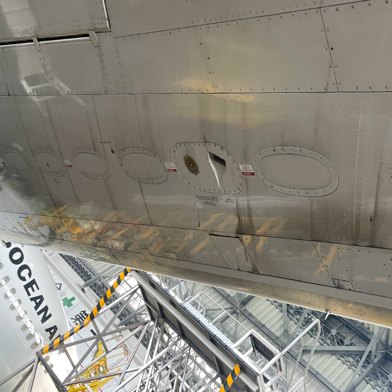 燃料を抜いた状態で行われる重整備の時だけ姿を現すアクセスパネルは、まさに空の旅の隠れた主役です。