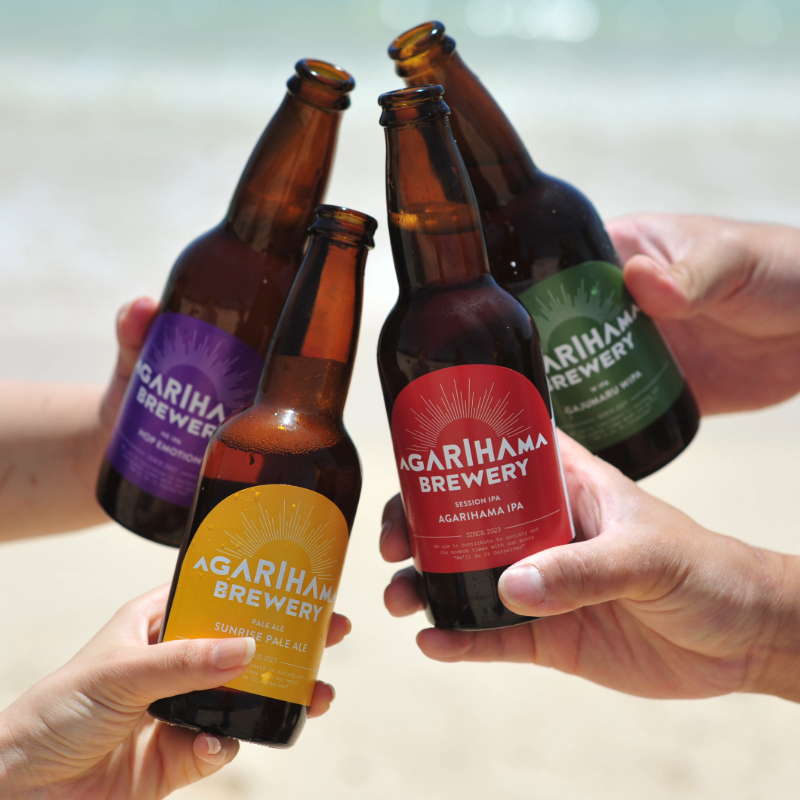 ~定番ラインナップ~ ■AGARIHAMA IPA(アガリハマ アイピーエー) トロピカルな香りと飲みやすさが際立つ逸品! 麦汁のほのかな甘みと程よい苦味に、沖縄県産のパイン果汁を加え、 爽やかで軽やかなSESSION IPAスタイルです。 苦味はしっかりと感じられつつも、フルーティーな味わいがバランスよく広がります。 さらに、柑橘類や南国フルーツを思わせる華やかな香りが、飲み終えた後も鼻からふんわりと抜けていきます。 苦味と酸味の絶妙なバランスがあり、軽やかでどんなシーンにもぴったり。ビールが苦手な方にもおすすめできる、すっきりとした飲み口の一杯です。 ※スタイル: SESSION IPA ※アルコール度数:4.5% ■HOP EMOTION(ホップ エモーション) 【JGBA(ジャパン・グレートビア・アワーズ)2025】 【ジューシーまたはヘイジー・ペールエール部門(ケグ部門)銅賞】 ニューイングランドIPAスタイルで苦味をほとんど感じさせない優しい味わいが魅力。 アロマ豊かなホップとフルーティーな香りが口いっぱいに広がり、特に女性に大人気。 通常の定番商品よりホップを倍以上使用し、複数のホップを組み合わせることで、 グレープフルーツやオレンジを思わせる柑橘の爽やかさを感じられます。 クリーミーで滑らかな飲み口で、ビールが苦手な方にも飲みやすい一杯です。 ※スタイル:NE IPA ※アルコール度数:5.5% ■SUNRISE PALE ALE(サンライズペールエール) 【JGBA(ジャパン・グレートビア・アワーズ)2024】 【アメリカン・ペールエール部門(ケグ部門) 金賞受賞】 定番でありながら幅広い方に愛されるアメリカンペールエール。 シングルホップ製法で人気のセンテニアルホップを使用しています。 レモンやオレンジを思わせる爽やかな柑橘のアロマと、程よいビター感をお楽しみいただけます。 暑い夏にぴったりの、ゴクゴク飲める爽快な味わい。まるで柑橘類を味わっているかのようなフルーティーな風味が特徴です。 ※スタイル: PALE ALE ※アルコール度数:5% ■GAJUMARU WIPA(ガジュマル ダブル アイピーエー) 【JGBA(ジャパン・グレートビア・アワーズ)2024】 【アメリカンスタイル・インディア・ペールエール部門(ケグ部門) 銀賞受賞】 「GAJUMARU」と名付けられたこのビールは、どっしりとした苦味をイメージして作られました。 カラメルモルトの深い色合いに加え、複雑に絡み合うホップの苦味と豊かなアロマ、 そして沖縄県産サトウキビの甘みが絶妙に調和しています。 苦味がしっかりと感じられ、ビール好きの方には特におすすめしたい一杯。 一度飲めばクセになる味わいで、ゆっくりじっくり味わいたいときにぴったりです。 ※スタイル: W IPA ※アルコール度数:7.5%