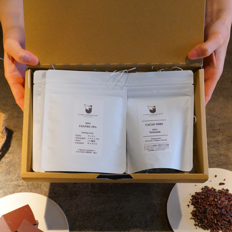 ●ウガンダ70% ウガンダ産のカカオからつくるチョコレートは、しっかりとコクのある味わい。チョコレートらしい味わいの中に、優しいパイナップルのような酸味とパン酵母のような発酵の香りが広がります。 Bean to Barチョコレートが初めての方にもおススメなチョコレートです! 【ティスティングノート】 パイナップル、パン酵母、キャラメル ●エクアドル70% エクアドル産のカカオからつくるチョコレートは、ラベンダーのようなフローラルな香りと紅茶のような渋みが特徴です。 最後に、はちみつのような甘い香りが口の中に広がります。 【ティスティングノート】 ラベンダー・はちみつ・紅茶 ●タンザニア70% タンザニア産のカカオからつくるチョコレートは、いちごのようなベリー香がふんわりと広がったのち、レモンのような鮮烈な酸味が押し寄せてきます。カカオらしい力強さもありながら、チョコレートの印象を大きく変えてくれる1枚です。 【ティスティングノート】 いちご、レモン、ヨーグルト