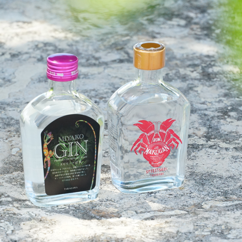 40度の宮古島ラム酒「MAKUGAN」と47度のクラフトジン「MIYAKOGIN」が入った200mlボトルセット。プレゼント用としても、自分用としてもおすすめ。