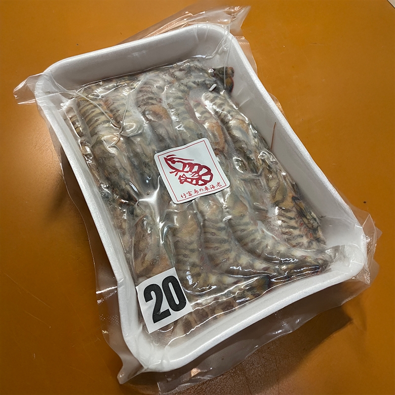 収穫した生きた車海老を-40℃で瞬間冷凍。