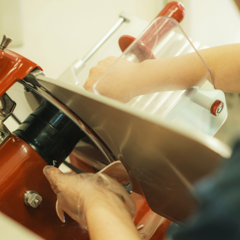 沖縄県産の豚肉を中心にドイツ製法で毎日手作りでハムやソーセージを作っています。