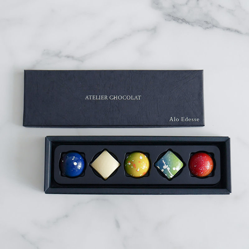 沖縄本島のほぼ中央、国頭郡金武町(きんちょう)にあるATELIER CHOCOLAT(アトリエショコラ)。 2024年沖縄県特産品コンテスト最優秀賞・県知事賞受賞したショコラティエです。 ショコラティエールの水本さんが約2ヶ月に1度のペースでテイストを変えた5種類の半ドーム型のチョコレートを作り出しています。 沖縄県の食材が持つ美味しさと香りのハーモニーを最大限に活かした、特別なショコラ。 春夏秋冬、季節ごとに旬の食材を使用し、沖縄の風景が目に浮かぶようなアーティスティックなボンボンショコラをぜひお楽しみください。