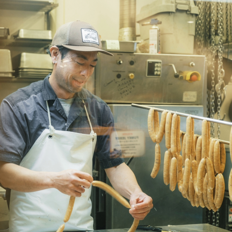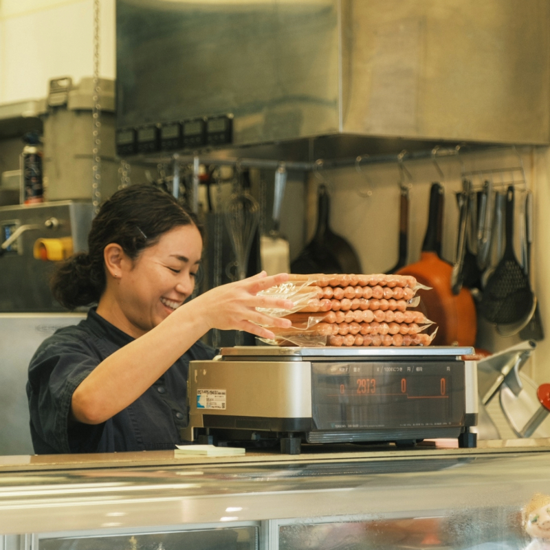 TESIOの味わいを代表するパキッとジューシーなスモークソーセージ。