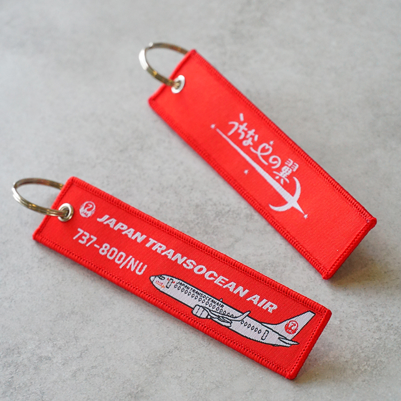 JTA初のオリジナルフライトタグは、グループカラーである赤を基調としたデザインです。 ボーイング737-800型機のイラストをモチーフに、裏面には「うちなーの翼」ロゴが入っています。