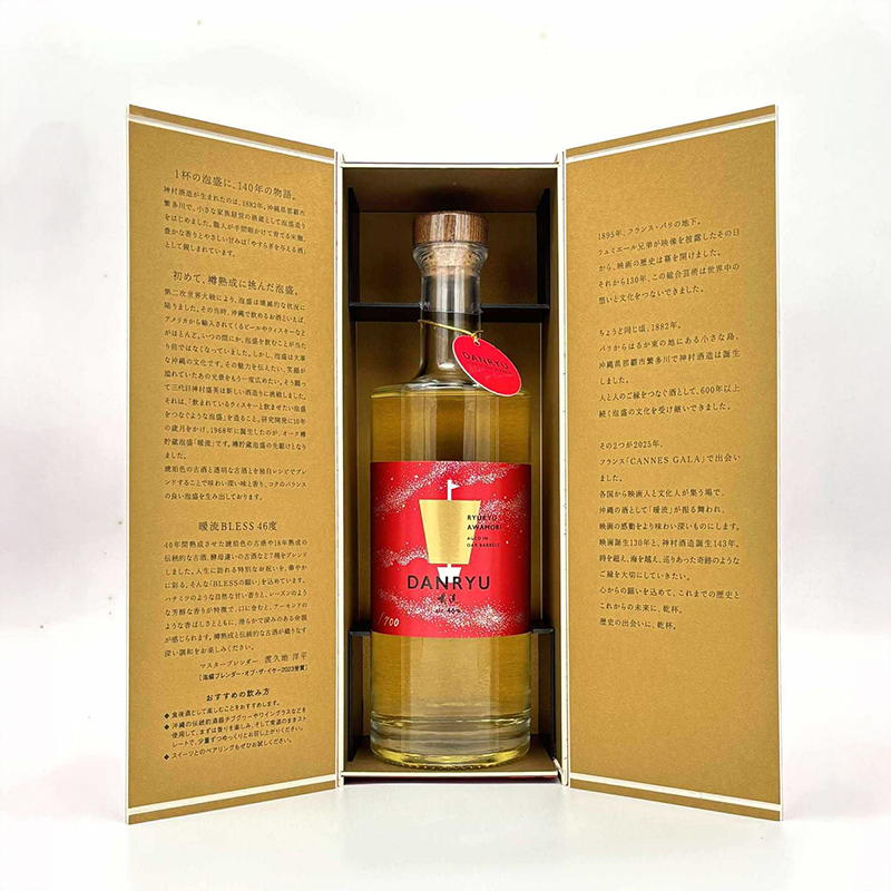 2025年、フランス・カンヌで開催されたカンヌ国際映画祭公式セレモニー「CANNES GALA」にて、泡盛「暖流」が振る舞われました。 デザートとともに提供されたこの一杯は、世界各国から集まった映画関係者を魅了。食後酒としても高く評価された味わいです。 ぜひスイーツとのペアリングをお楽しみください。