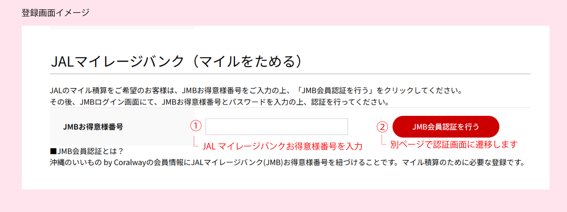 ②マイページまたは会員登録時にJMB会員番号を認証、登録せずに当サイトにて商品をご購入された場合